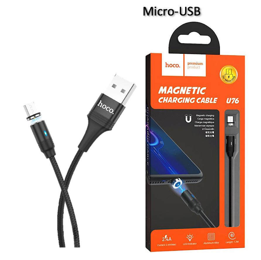 Câble Micro-USB Magnétique 1,2M Hoco U76 noir