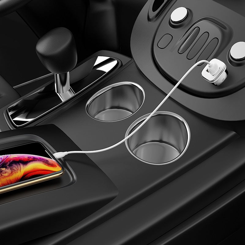 Kit chargeur allume cigare double USB + câble Lightning 1m borofone BZ12 blanc